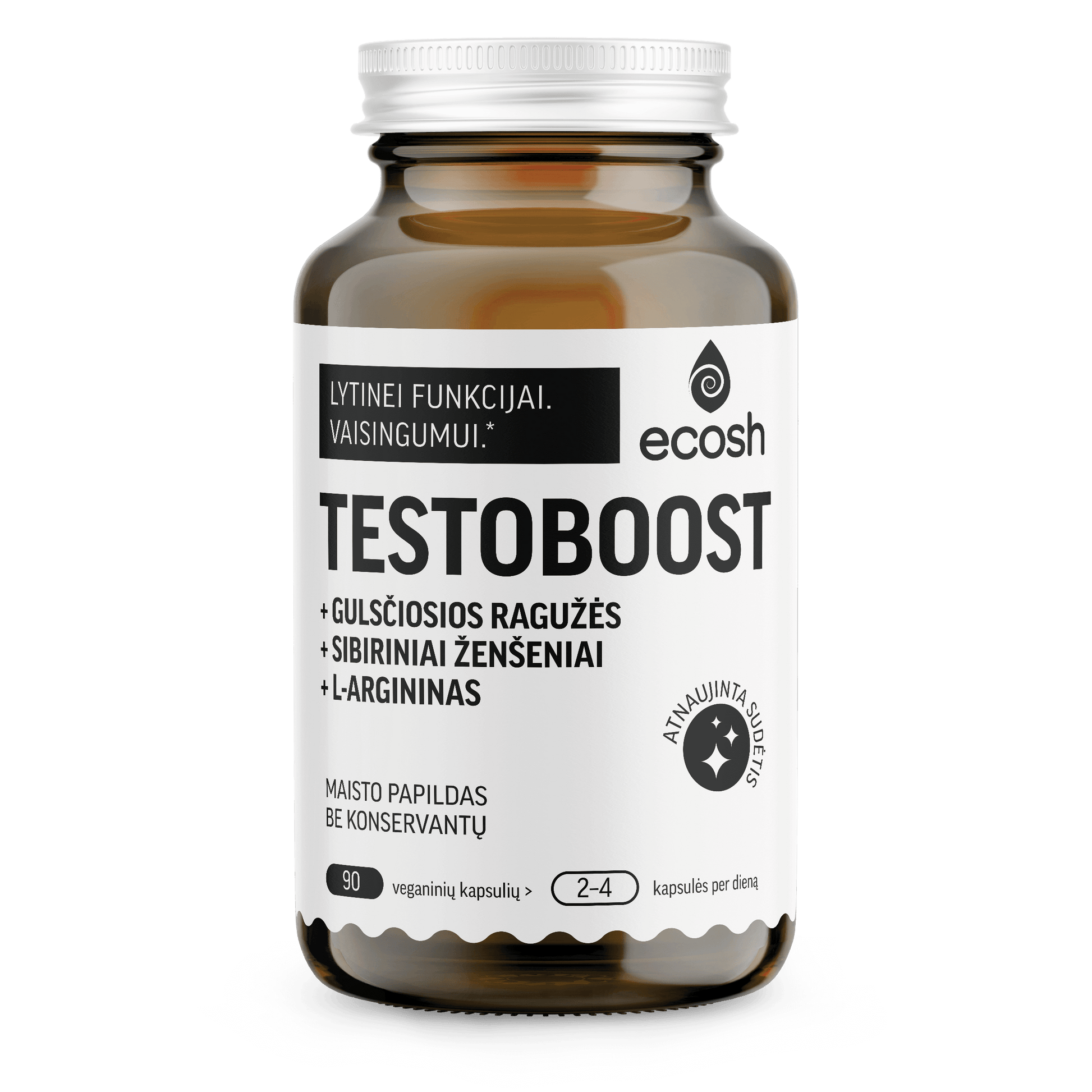 UPDATED COMPOSITION! The updated composition of ECOSH Testoboost dietary supplement now includes not only dry extract of yarrow, but also Siberian ginseng root extract, L-arginine, Vitamin E, Zinc and Selenium.