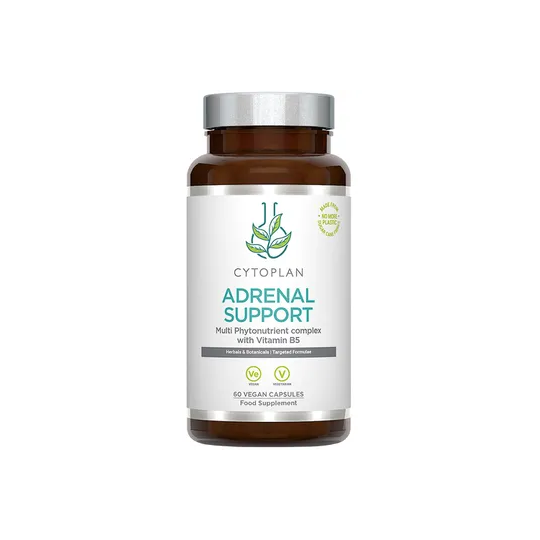 Cytoplan "Adrenal Support" maisto papildas su vitaminu B5. Taip pat gausus jodo ir chromo . Tinka vegetarams ir veganams.