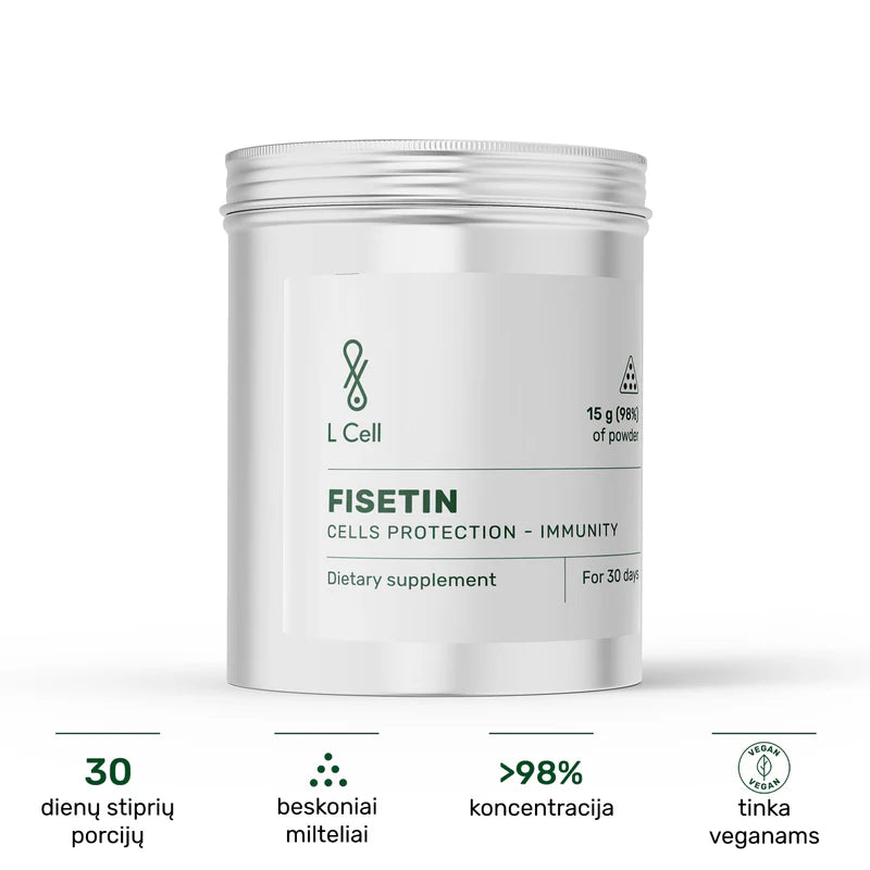 - Ilgaamžiškumas. Fisetinas yra senolitikas, kuris pašalina kenksmingas „zombių“ ląsteles (ląstelių uždegimo priežastį), ir antioksidantas, apsaugantis mūsų ląsteles nuo laisvųjų radikalų.