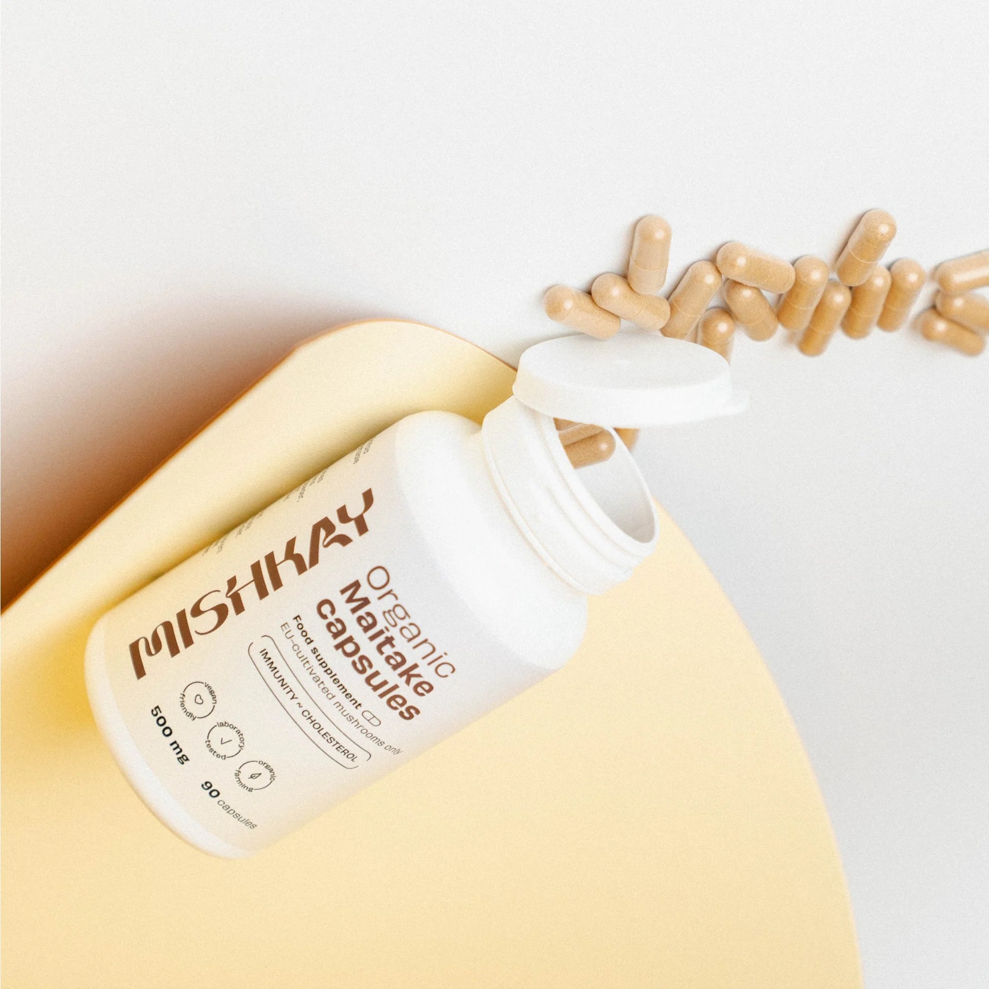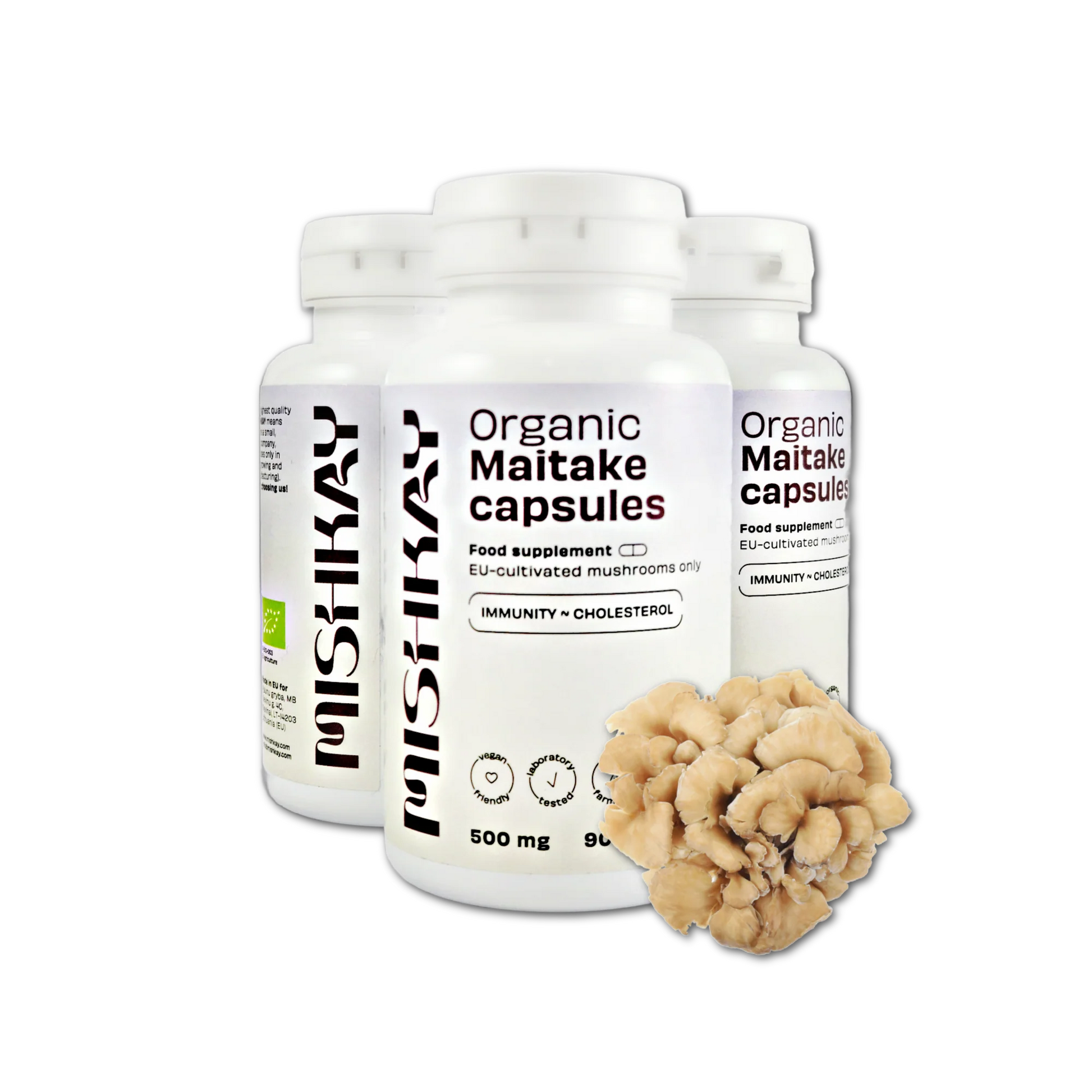 Sudedamosios dalys: ekologiškos maitake (Grifola Frondosa*) grybų milteliai, hipromeliozė (veganiškas kapsulės apvalkalas).